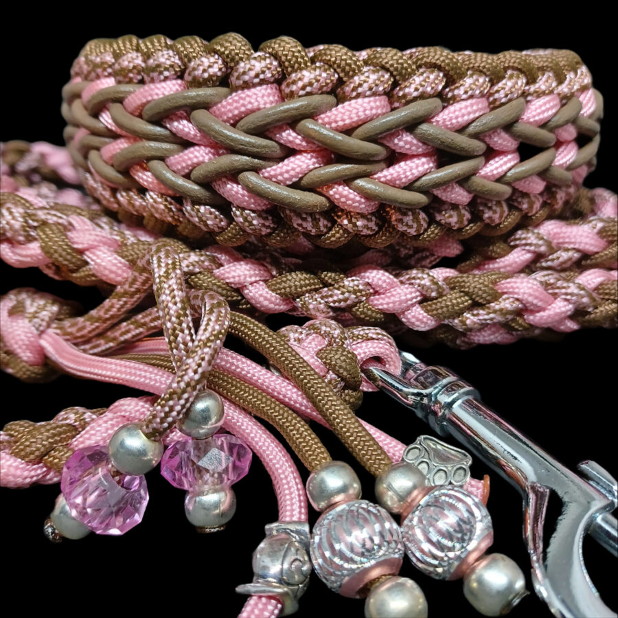Set roze-bruin: halsband met leer & leiband Sliema