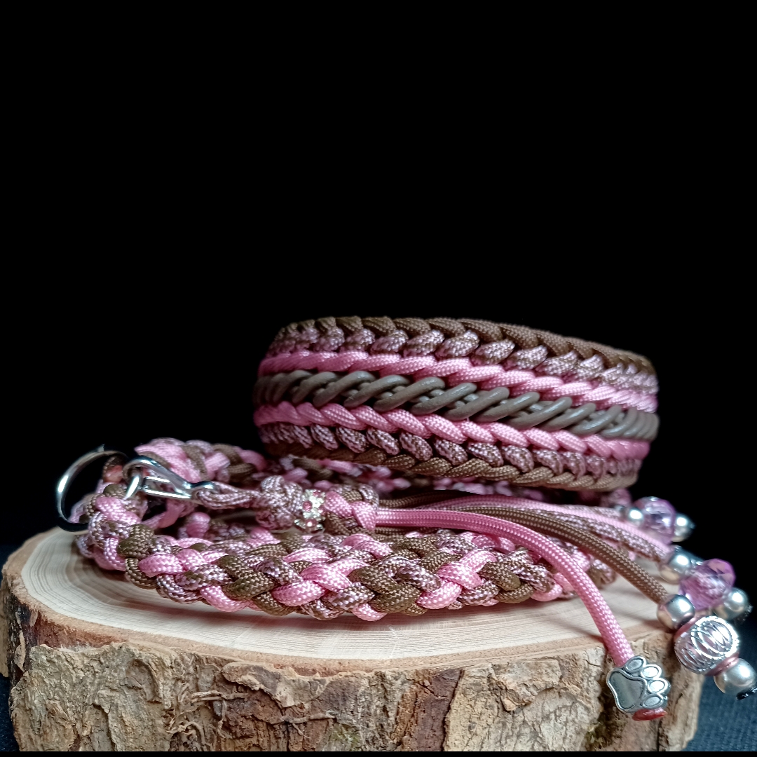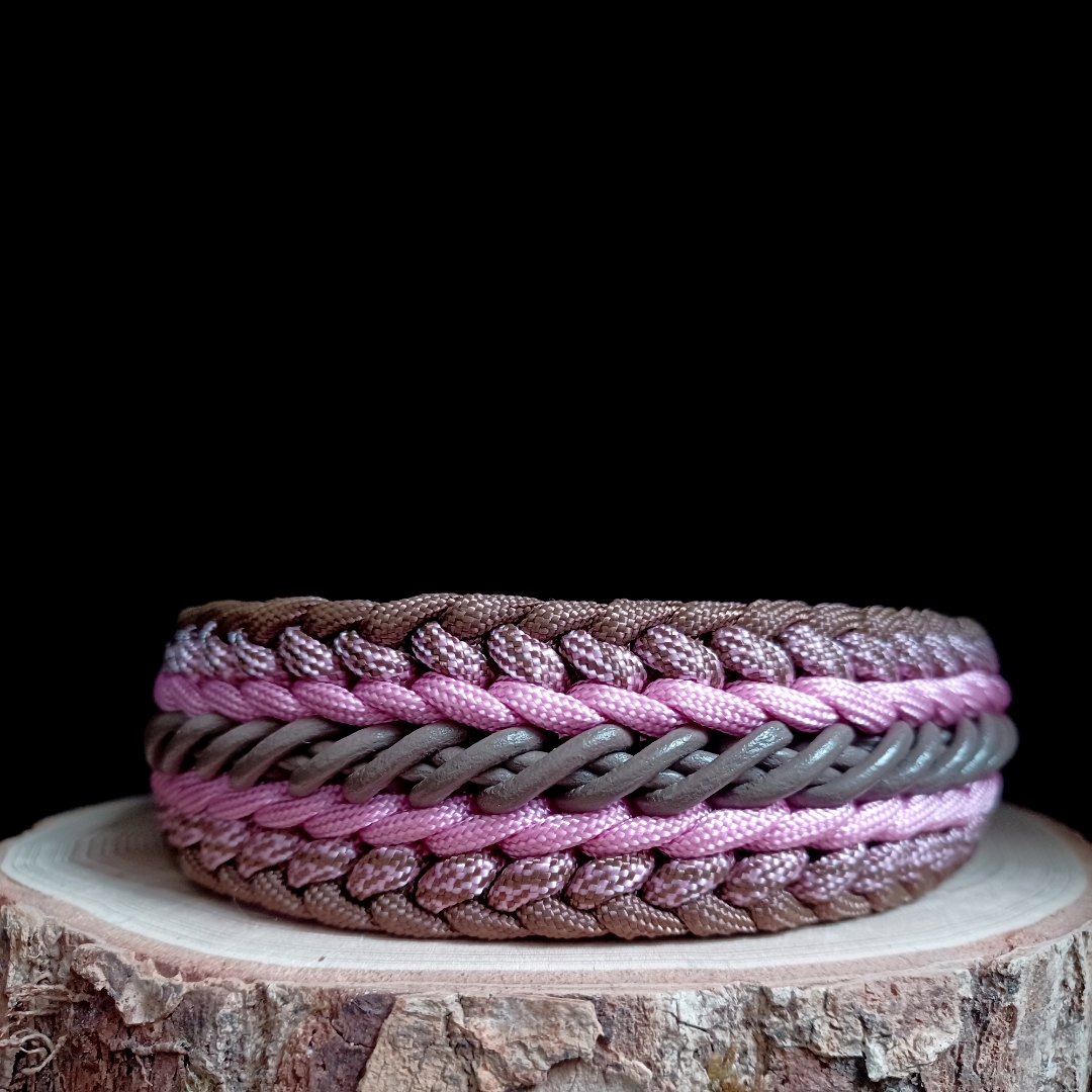 – Paracord 100 of type 1 is het dunste type paracord wat ik gebruik om halsbanden te knopen. Dit wordt vaak gebruikt in halsbanden voor kleine hondjes of in combinatie met type 2 en/of type 3 voor grote(re) honden. De minimale breekkracht van type 1 is 45 kg. In dit type paracord is er iets minder keuze van beschikbare kleuren.